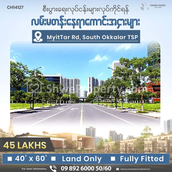 လူကြီးမင်းတို့၏လုပ်ငန်းနှင့်ကိုက်ညီမှုရှိသော အိမ်ခြံမြေနေရာအချက်အလက်များကို အချိန်ခနအတွင်းဝင်ရောက်ရွေးချယ်ရှာဖွေနိုင်ပြီး အကောင်းမွန်ဆုံး ဝန်ဆောင်မှုများကိုရယူရန် Cosmo haven real estateကို ယခုဘဲဆက်သွယ်လိုက်ပါ...