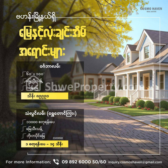 Property Name : ဗဟန်းမြို့နယ်ရှိမြေနှင့်လုံးချင်းအိမ်အရောင်းများ/Land Only and Landed House For Sales Bahan Township In Yangon/09892600050,09892600060