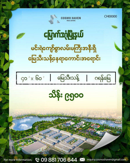 Property Name : įį¼į±į¬įįŗįįįÆį¶įį¼įįÆį·įįįŗ įįįŗįøįį²įį»į±į¬įŗį į½į¬įįįŗįøįįį¼į®įøį”įį®įøįį¾į įį¼į±įį®įøįįį·įŗįį±įį¬įį±į¬įįŗįøį”įį±į¬įįŗįø/Land Only for Sales North Dagon Township in Yangon