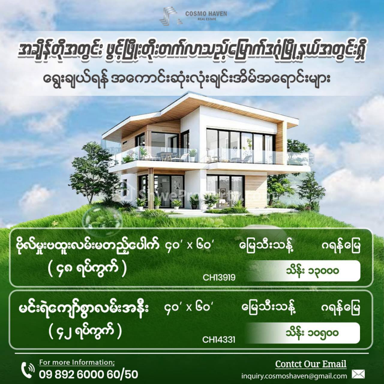🏡 📌🏘️⏰ 🎉🏞️ ⏳အချိန်တိုအတွင်း ဖွံ့ဖြိုးတိုးတက်နေလျက်ရှိသည့်📈 မြောက်ဒဂုံမြို့နယ်အတွင်းရှိ ရွေးချယ်ရန်အကောင်းဆုံး 🏠လုံးချင်းအိမ်ကောင်းများနှင့် မြေသီးသန့်အရောင်းများကို ကျွန်တော်တို့ Cosmo Haven Estate နှင့်အတူ အမြန်ဆုံး လက်ဝယ်ပိုင်ဆိုင်နိုင်ဖို့ ✨ နွေးထွေးစွာဖိတ်ခေါ်လိုက်ပါတယ်ခင်ဗျာ🤗