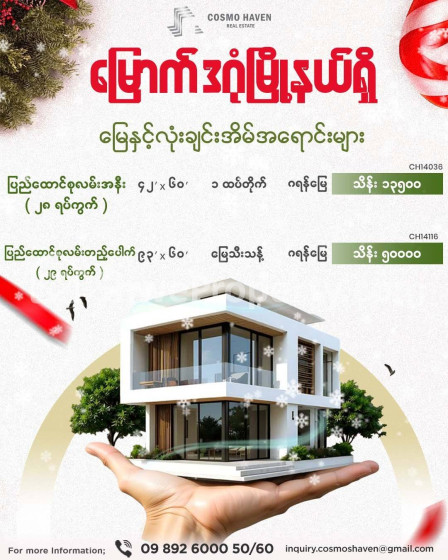 🏡 📌🏘️⏰📌မြောက်ဒဂုံမြို့နယ်အတွင်းကိုမှ လိုချင်ပါတယ် ဆိုတဲ့ လူကြီးမင်းတို့အတွက် 📌မြောက်ဒဂုံမြို့နယ်ရပ်ကွက်အစုံ နေရာကောင်းမြေနှင့်လုံးချင်းအိမ်အရောင်းများကို ကျွန်တော်တို့ Cosmo Haven Estate မှ ရွေးချယ်ဖော်ပြပေးလိုက်ပါတယ်ခင်ဗျ 🏘