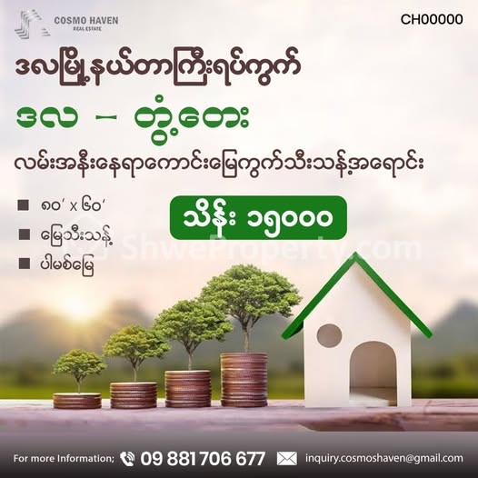 #ဒလမြို့နယ်တာကြီးရပ်ကွက်ဒလတွံတေးလမ်းအနီးနေရာကောင်းမြေသီးသန့်အရောင်း