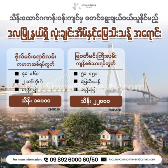 Property Name : įįįį¼įįÆį·įįįŗį”įį½įįŗįø įįÆį¶įøįį»įįŗįøį”įįįŗįį¾įį·įŗ įį¼į±įį®įøįįį·įŗį”įį±į¬įįŗįøįį»į¬įø/Landed House and Land Only for Sales Dala Township In Yangon/09892600050,09892600060