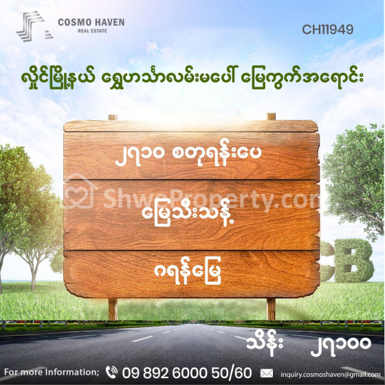 🌿🏡ရန်ကုန်မြို့ရဲ့ အဓိကမိန်းလမ်းမကြီးဖြစ်တဲ့ ပြည်လမ်းမကြီး အနီးတွင်တည်ရှိပြီး အနီးနားတွင်လဲ Shwe Hin Thar Condominium / Market Place / International School စတဲ့နေရာများရဲ့အနီးတွင်ရှိသည့်အပြင် လုံခြုံရေးအတွက်ဆိုလဲ ၂၄ နာရီ လုံခြုံမှုအပြည့်ရှိတဲ့ နေရာကောင်းလေးမှာ လူကြီးမင်းတို့ရဲ့ စိတ်ကူးထဲက အိမ်လေးတစ်လုံးကိုစိတ်ကြိုက်ဖန်တီးတည်ဆောက်ပြီး အေးချမ်းစွာ နေထိုင်ဖို့အသင့်တော်ဆုံးဖြစ်တဲ့ ရွှေဟင်္သာလမ်း ပေါ်က နေရာကာင်း မြေသီးသန့်အရောင်းလေးကို ကျွန်မတို့ Cosmo Haven Real Estate မှ ဖော်ပြပေးလိူက်ပါတယ်ရှင်🙏🙏🙏