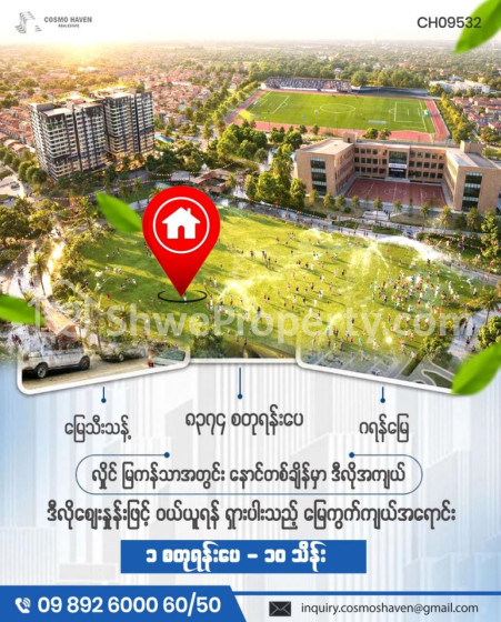 🍀 အေးချမ်းဆိတ်ငြိမ်မှု နှင့် လုံခြုံမှုကို အဓိကဦးစားပေးပြီး✨ နေထိုင်ဖို့ဖြစ်စေ ရင်းနှီးမြုပ်နှံဖို့ဖြစ်စေ ရှာဖွေနေတဲ့ လူကြီးမင်းတို့အတွက် အထူးသင့်တော်တဲ့ နေရာကောင်းတစ်ခု ဖြစ်ပြီး🚦ဘုရင့်နောင်လမ်းမကြီးနဲ့ ဗဟိုလမ်းမကြီးအနီးတွင် တည်ရှိတာကြောင့် သွားလာရလွယ်ကူ ညွှန်းရလွယ်သည့်အပြင် 🏠အိမ်ရာ၀န်းထဲကို၀င်လိုက်ပြီဆိုတာနဲ့ သစ်ပင်ပန်းပင်များ စိမ်းစိုအုပ်မှိုင်းနေသောကြောင့် 🌴ကိုယ်ပိုင်ကမ္ဘာငယ်လေးကို ရောက်ရှိသွားသလို ခံစားရစေမယ့် နေရာမျိုးမှာ ကိုယ်တိုင်စိတ်တိုင်းကျ ဒီဇိုင်းဖြင့် အိမ်ဆောက်နေထိုင်နိုင်မယ့် မြေကွက်ကျယ်လေးကို ကျွန်တော်တို့ 💁 Cosmo Haven Estate နှင့်အတူ အမြန်ဆုံးရွေးချယ်၀ယ်ယူနိုင်ပါပြီခင်ဗျာ 🤗✨
