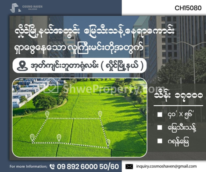Property Name : လှိုင်မြို့နယ်အတွင်းရှိ မြေကွက်ကို စျေးနှုန်းသင့်တင့်စွာဖြင့် ဝယ်ယူ ပိုင်ဆိုင်နိုင်မည့် အခွင့်အရေးတစ်ခု/Land Only For Sales Hlaing Township In Yangon/09892600050,09892600060