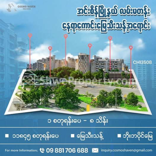 Property Name : အင်းစိန်မြို့နယ် လမ်းမတန်း နေရာကောင်း မြေသီးသန့်အရောင်း/Land Only for Sales Insein Township in Yangon/09892600050,09892600060