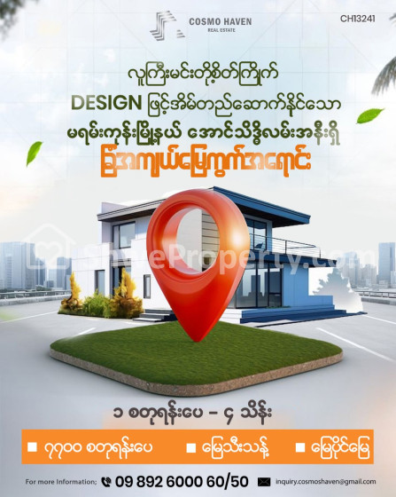 🏙✨ရန်ကုန်မြို့ရဲ့အဓိကမိန်းလမ်းမကြီးတစ်ခုဖြစ်တဲ့ အင်းစိန်လမ်းမကြီးနှင့် မင်းဓမ္မလမ်း တည့်ပေါက်သည့် အောင်သိဒ္ဓိလမ်းအနီးတွင် တည်ရှိပြီး 🌿ရန်ကုန်မြို့ရဲ့အချက်အချာအကျဆုံးနေရာများသို့ သွားလာရလွယ်ကူသည့်အပြင် Makro Shopping Centre, ရန်ကုန်နည်းပညာတက္ကသိုလ်, Victoriaဆေးရုံ, Golf Club နှင့် Hotel, Restaurantများလည်း အနီးနားတွင်တည်ရှိသောကြောင့် လူကြီးမင်းတို့ နေ့စဉ်ဘဝနေထိုင်မှုအတွက်အစစအရာရာ လွယ်ကူအဆင်ပြေစေမည့်နေရာမျိုးမှာ ၁ စတုရန်းပေ ၄ သိန်းနဲ့ ပိုင်ဆိုင်နိုင်မည့်အခွင့်အရေးမျိုးကို လူကြီးမင်းတို့ လက်မလွှတ်ရလေအောင် ကျွန်တော်တို့ Cosmo Haven Estateသို့ အမြန်ဆုံးဆက်သွယ်ရွေးချယ်ဝယ်ယူနိုင်ပါပြီခင်ဗျာ✨✨
