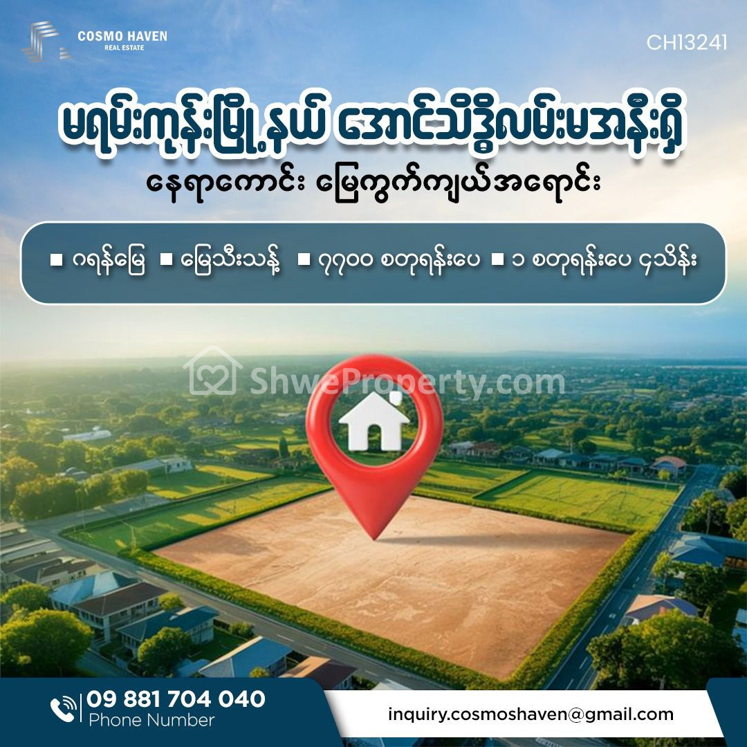 Property Name : မရမ်းကုန်းမြို့နယ် အောင်သိဒ္ဓိလမ်းမအနီးရှိ နေရာကောင်း မြေကွက်ကျယ်အရောင်း/Land Only for Sales Mayangone Township in Yangon/09892600050,09892600060