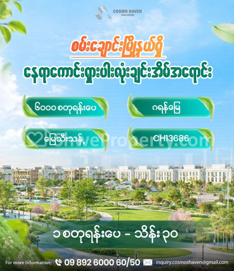 ဖြင့်အကောင်အထည်ဖော်ဆောက်လုပ်နိုင်သော ရှားပါးမြေသီးသန့်နေရာကောင်းလေးကို အမြန်ဆုံးပိုင်ဆိုင်ဖို့ ကျွန်တော်တို့ Cosmo Haven Estate ကိုဆက်သွယ်လိုက်ပါခင်ဗျာ💯💯💯