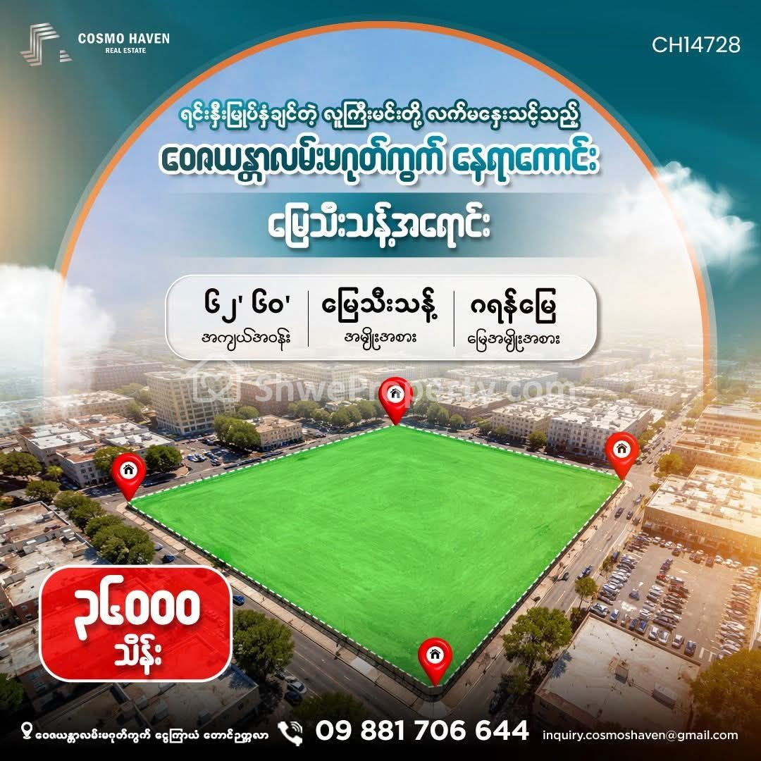 Property Name : ဝေဇယန္တာလမ်းမဂုတ်ကွက် နေရာကောင်း ဈေးတန် မြေသီးသန့်အရောင်း/Land Only for Sales South Okkalapa Township in Yangon/09892600050,09892600060