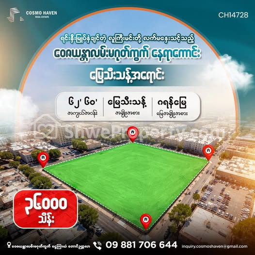 Property Name : ဝေဇယန္တာလမ်းမဂုတ်ကွက် နေရာကောင်း ဈေးတန် မြေသီးသန့်အရောင်း/Land Only for Sales South Okkalapa Township in Yangon/09892600050,09892600060