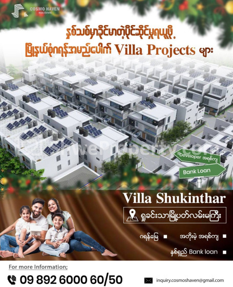 Property Name : ရန်ကုန်မြို့နယ်ရှိနေရာစုံဂရန်အမည်ပေါက်Villa Projectsအရောင်းများ/Villa Projects For Sales In Yangon/09892600050,09892600060