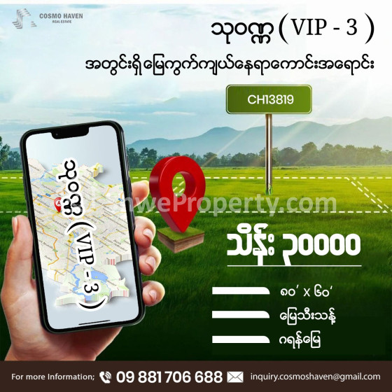 Property Name : သုဝဏ္ဏ (VIP 3) အတွင်းရှိ မြေကွက်ကျယ် နေရာကောင်းအရောင်း/Land Only for Sales Thingangyun Township in Yangon/09892600050,09892600060