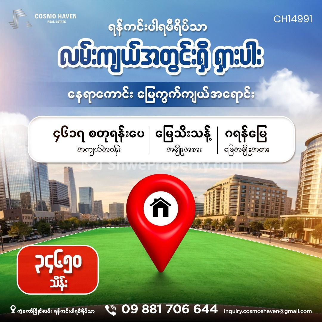 Property Name : ရန်ကင်းပါရမီရိပ်သာ လမ်းကျယ်အတွင်းရှိ ရှားပါး နေရာကောင်း မြေကွက်ကျယ်အရောင်း/Land Only for Sales Yankin Township in Yangon/09892600050,09892600060