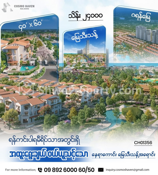 ⛲ပါရမီလမ်းမကြီးနဲ့လည်းနီးမယ်☺️ ကန်ဘဲ့လမ်းကိုလည်းအလွယ်တကူသွားလာနိုင်ပြီး ဝေဇယန္တာလမ်း၊ ကမ္ဘာအေးဘုရားလမ်းတို့ ဝန်းရံထားတဲ့ 🏞️မြေသီးသန့် ထောင့်ကွက်လေးမှာ ကိုယ်ပိုင်စိတ်ကြိုက် ဒီဇိုင်းဖြင့် 🏰နေအိမ်ကောင်းလေးကို တည်ဆောက်နေထိုင်လိုသော လူကြီးမင်းတို့အတွက် ပိုင်ဆိုင်မှုလည်းခိုင်မာတဲ့ ဂရန်မြေကွက်လေးကို အခုပဲ ဝယ်ယူနေထိုင်နိုင်ဖို့ ညီမတို့ ✨Cosmo Haven Estate✨ကို ဆက်သွယ်လိုက်တော့နော် ☎️☎️