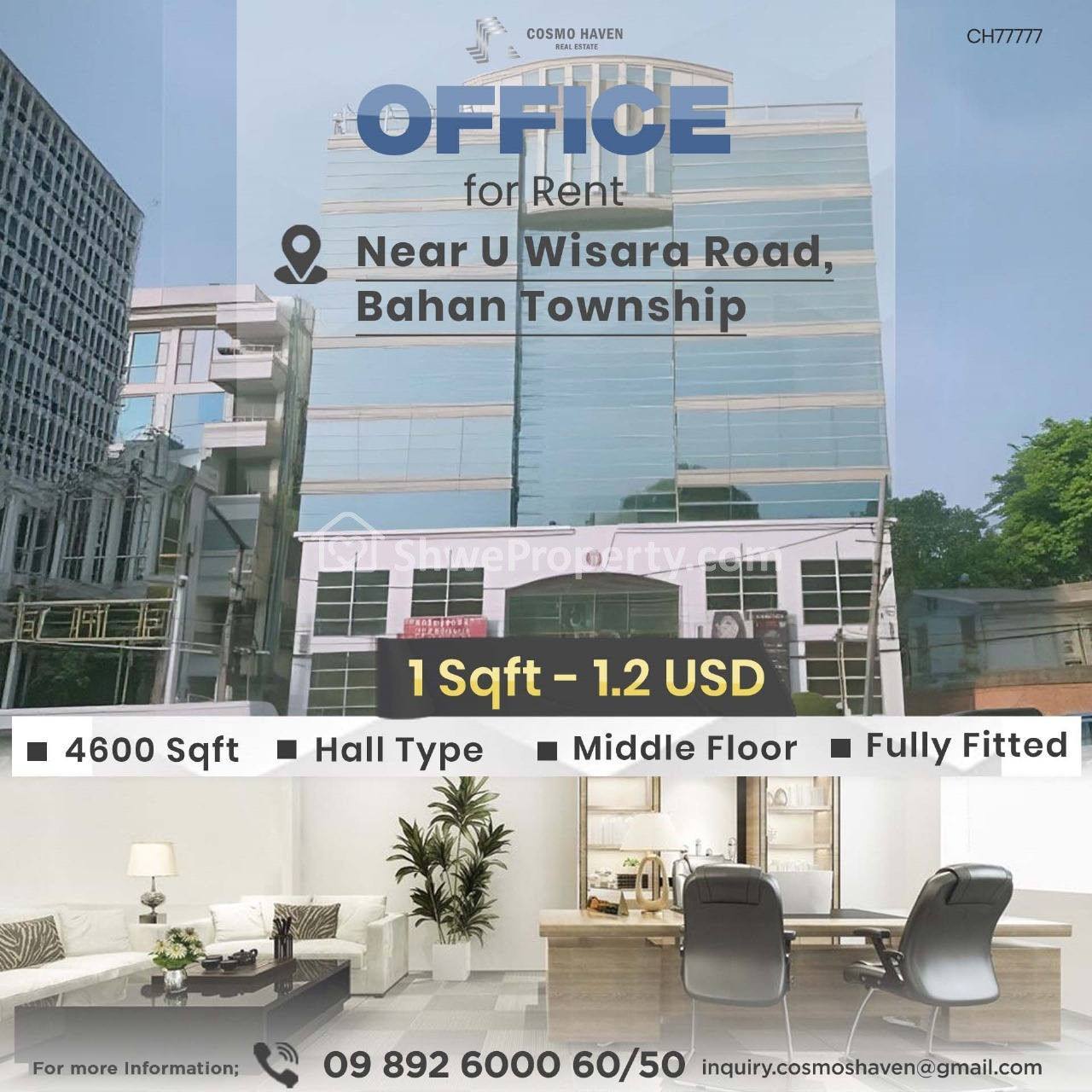 Property Name : ဈေးနှုန်းအသင့်အတင့်နဲ့ Office များဖွင့်ရန်နေရာကောင်းတစ်ခု/Office for Rent Bahan Township in Yangon