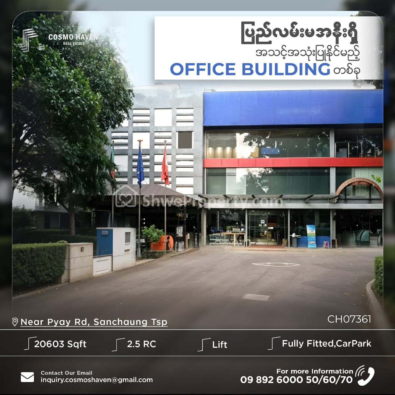 👩🏻💼၀န်ထမ်းအင်အား များပြားတဲ့ Distribution Companyများ ၊ ဆေးဝါး Company များ နှင့် တခြားသော Company ကြီးများအတွက် ရုံးခန်းတစ်ခုကို ဖန်တီးပုံဖော်ရန် လုံလောက်သော အကျယ်အ၀န်းရှိတဲ့ Building ၊ 🚗ကားအစီး (၂၀) ခန့် ရပ်နားနိုင်မည့် ကားပါကင်ပါ၀င်တဲ့ ပြည်လမ်းမအနီးရှိ 🏢Office Building တစ်ခုကို လုပ်ငန်းရှင်တို့အတွက် Cosmo Haven မှ ရွေးချယ် ဖော်ပြပေးလိုက်ပါတယ်ရှင့်💁🏻♀❄❄❄💁💁💁🆙💁🏻♀