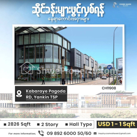 🏢 🎆🎆🎆ရန်ကုန်မြို့ရှိအချက်ချာကျသည့်နေရာများတွင် Luxury Shop များ နေရာများအပြင် 🚏ကားဂိတ်၊ဈေးဆိုင်တန်းများ၊လူစည်ကားသည့် နေရာများတွင်တည်ရှိသောShophouse များ၊လူကြီးမင်းတို့၏ 🛍️Product များကိုခင်းကျင်းပြသ၍ရောင်းချရန်အတွက် Shophouse နေရာကောင်းများကို လုပ်ငန်းလိုအပ်ချက်အရ Decorations များကိုစိတ်ကြိုက်ပြင်ဆင်နိုင်ပြီး ကားပါကင်အတွက်လည်းစိတ်ပူစရာမလိုသည့် အပြင်မြို့နယ်စုံရှိ နေရာကောင်းလေးများကို လုပ်ငန်းရှင်လူကြီးမင်းများ စိတ်အေးချမ်းသာစွာ ရွှေးချယ်နိုင်စေရန် Cosmo Haven မှတစုတစည်းတည်းဖော် ပြပေးလိုက်ပါတယ်ခင်ဗျာ။...🏡🏡