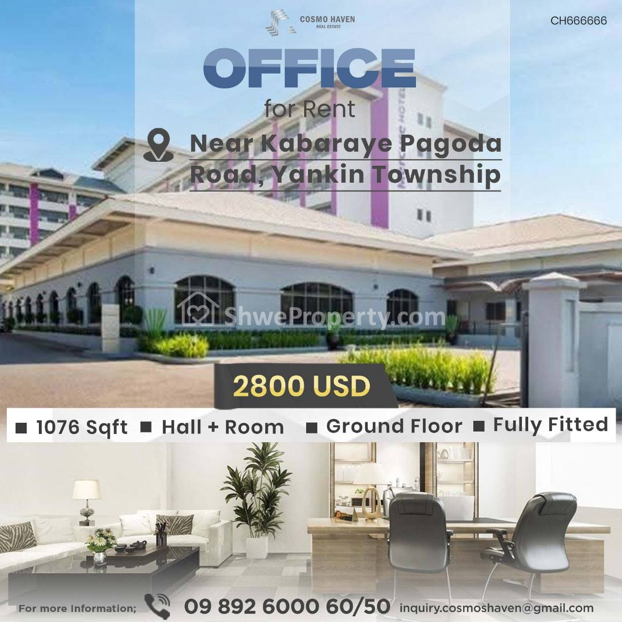 Property Name : ဈေးနှုန်းအသင့်အတင့်နဲ့ Office များဖွင့်ရန်နေရာကောင်းတစ်ခု/Office for Rent Yankin Township in Yangon