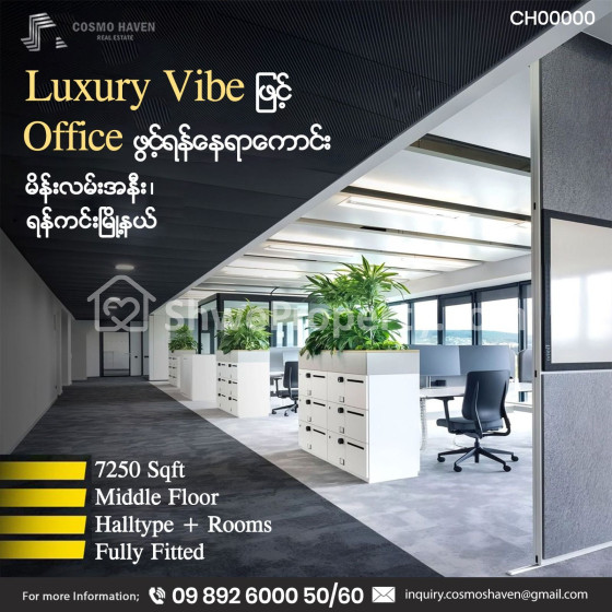 Property Name : Luxury Vibe ဖြင့် ကုမ္ပဏီကြီးများ ပြောင်းရွေ့ဖွင့်လှစ်ရန် နေရာကောင်းတစ်ခု/Office For Rent Yankin Township In Yangon/09892600050,09892600060
