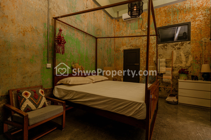 Located on one of the blue-plaque heritage streets aka Bo Aung Kyaw street in Yangon. The apartment itself is a unique heritage building with 1 bedroom linked to the open kitchen space and spacious living room.