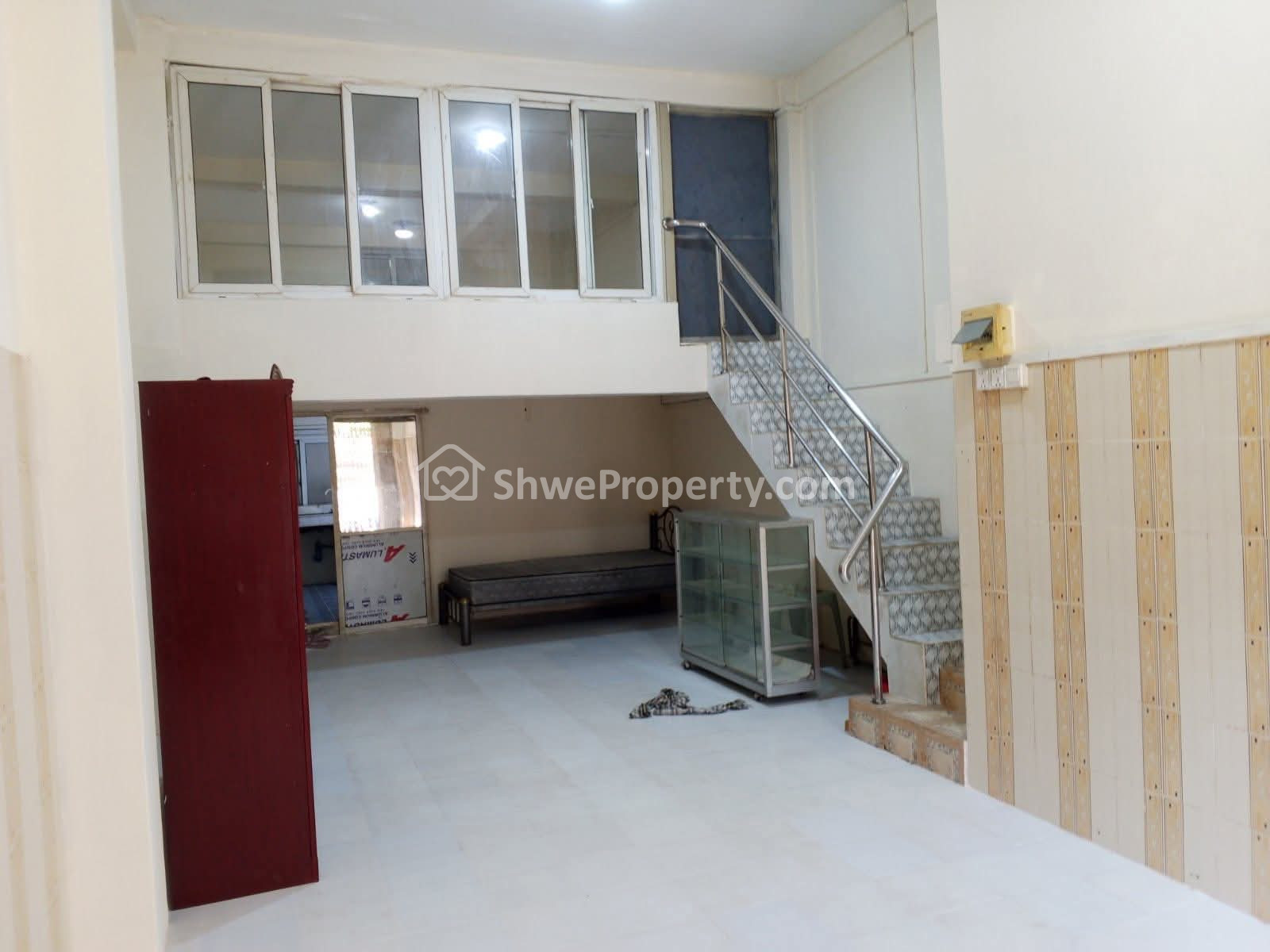 တခါး(2)ထပ်။မှန်တခါးပါ။သံပန်းဆန်းရှိတ်ပါ။အပေါ်ထပ် အိပ်ခန်း(1)ခန်း။ဘိုထိုင်။