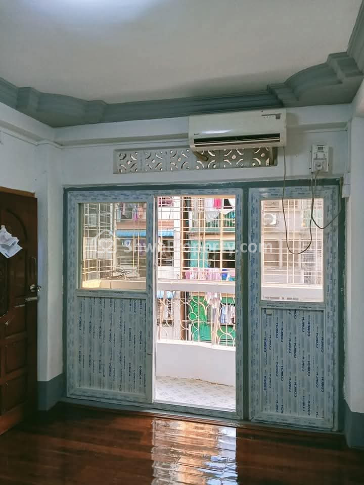 အကျယ် 13/55 /4 လွာတတိယထပ်ခုနှစ်လွှာတိုက် 1 BR 1 AC RC ပေါ်လျှာထိုးခင်း နောက်ခန်းကြွေခင်ကပ်ဘိုလ်ထိုင်ရေမီးပိုင်