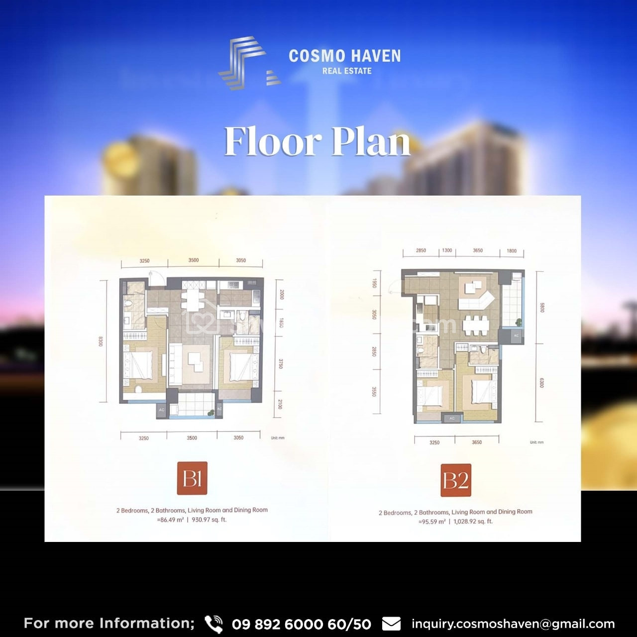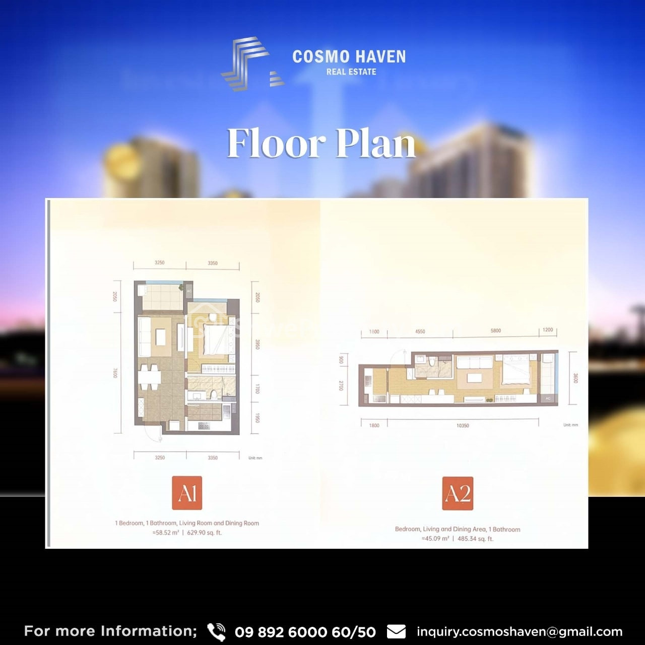 အသေးစိတ်သိရှိလိုပါက Cosmo Haven Real Estate သို့ ဆက်သွယ်မေးမြန်းနိုင်ပါတယ်။