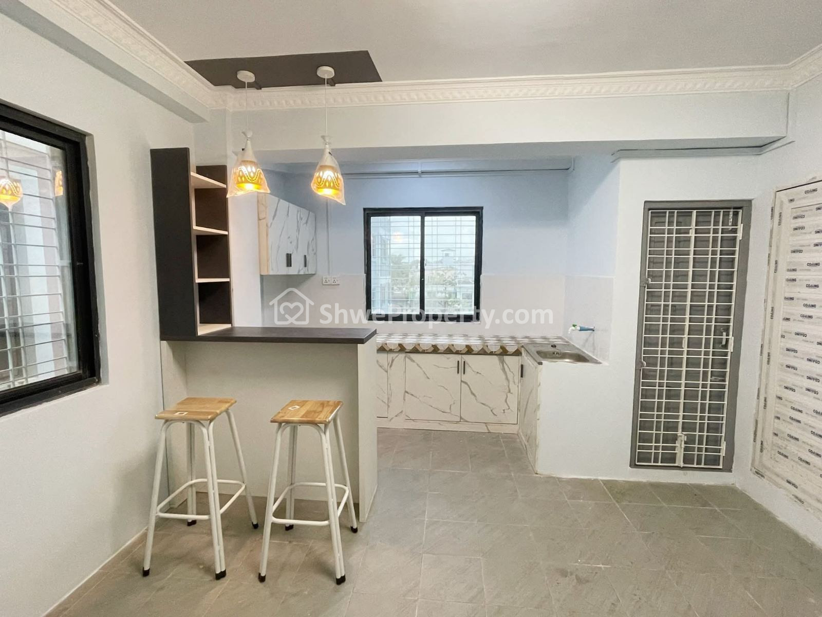 - Kitchen Bar Counter / TVစင်/ ဘုရားစင် / ဆိုဖာ/ စားပွဲ/ Kitchen Cabinets များဖြင့် သပ်ရပ်စွာအလှဆင်ထားခြင်း