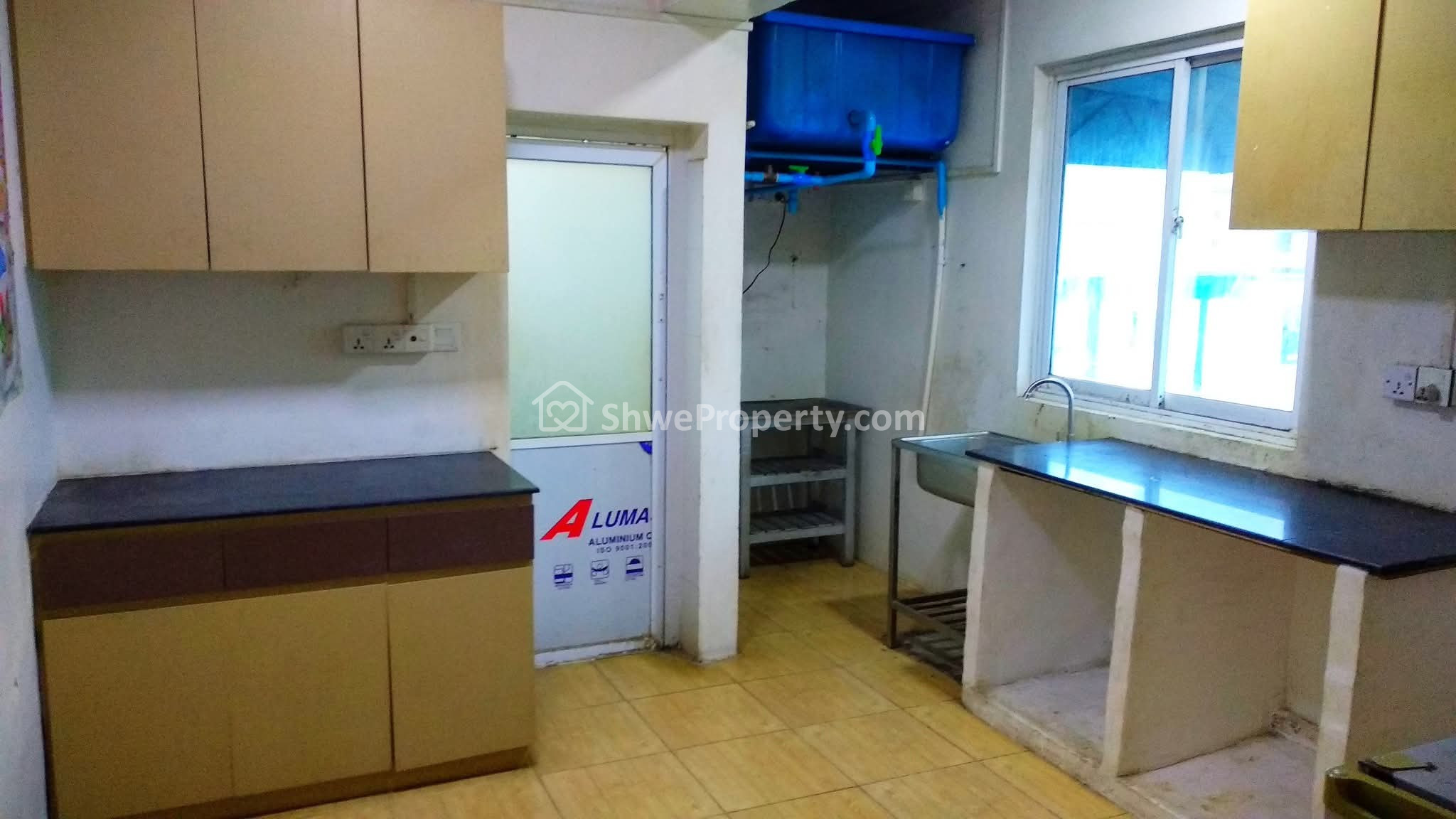➡️ မီးဖိုခန်း - ကြိတ်သား cabinet စင် ရှိပါတယ်၊ ပြတင်းပေါက်နားမှာတော့ အခုက ရိုးရိုးအုတ်ခုံပါပဲ၊ အရင်ကတော့ ကာလာတူ cabinet လေးရှိပါတယ်။