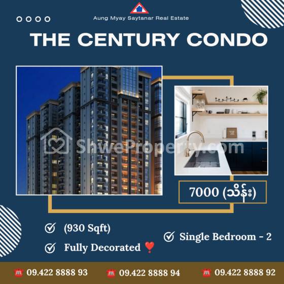 Property Name : လှိုင်မြို့နယ်၊ရန်ကုန်-အင်းစိန်လမ်းမကြီးပေါ်တွင်ခမ်းနားထည်ဝါစွာတည်ဆောက်ထားပြီး၊မြေအချိုးကျပိုင်ဆိုင်မှုရနိုင်မည်ဖြစ်သော (The Century Luxury Condo)မှ အရောင်းခန်း