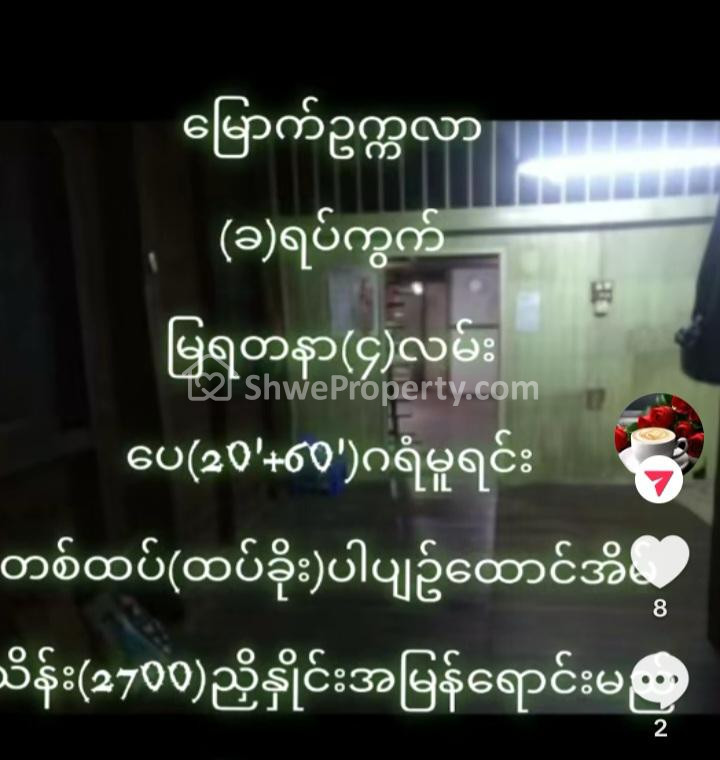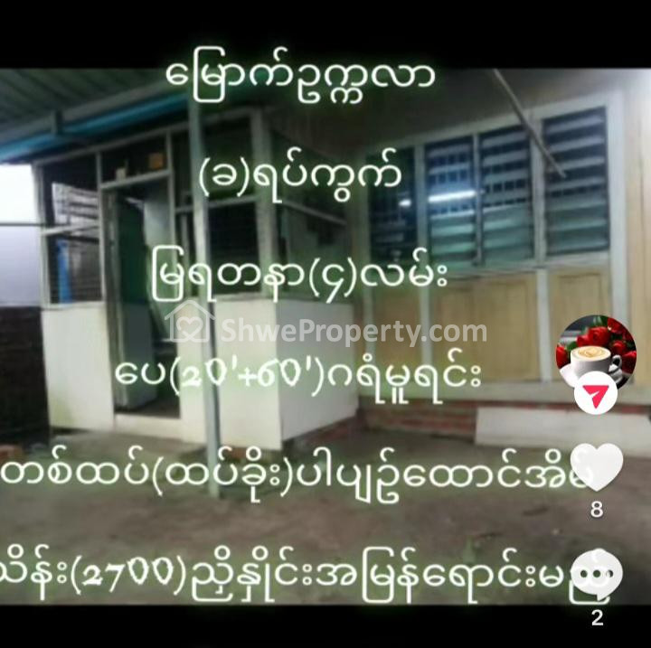 အမှတ် ၃၈၆, မြောက်ဥက္ကလာပမြို့နယ်, မြရတနာ (၄) လမ်း, (ခ) ရပ်ကွက်. ပေ ၂၀", ပေ ၆၀". မျက်နှာပွင့် အနောက်လှည့်. ရေ အစိုးရ, ဂရံအမည်ပေါက်ရမည်. တစ်ထပ်ပျဉ်ထောင်အိမ်ပါ. သိန်း ၁,၅၀၀. စိတ်ဝင်စားသူများဆက်သွယ်ရန်.