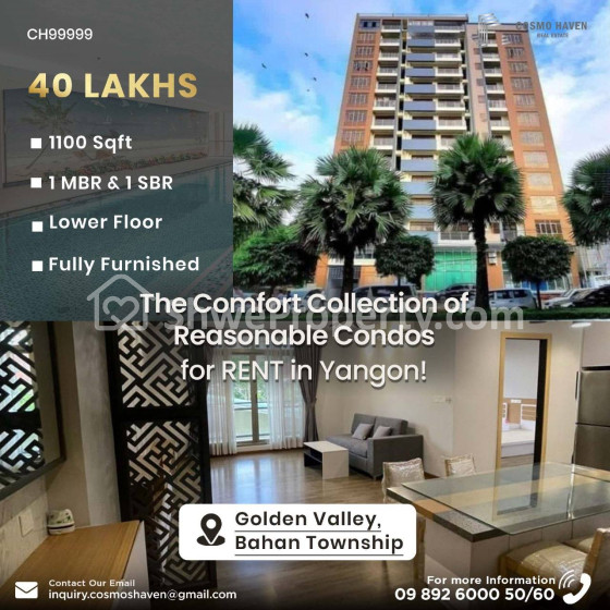 Property Name : ရန်ကုန်မြို့နယ်ရှိမြို့နယ်စုံကွန်ဒိုအငှားများ/ Golden Valley Condominium for Rent Bahan Township in Yangon