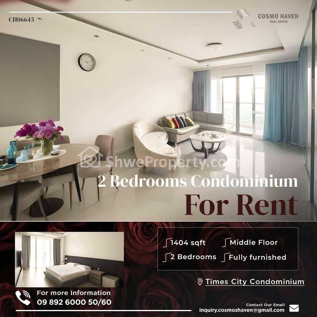 ကမာရွတ်မြို့နယ်အနီးအချက်အချာကျသောနေရာဖြစ်သော Times City Condo တွင် Furniture အပြည့်အစုံပါ၀င်ပြီး အလွှာမြင့်ဖြစ်တဲ့ 2 Bedrooms အငှားခန်းလေးရှိပါမယ်ရှင်။ 👉🙆♀🙆♀❣❣👈