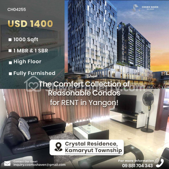 Property Name : ကမာရွတ်မြို့နယ်ရှိCrystal Residence Condominiumအငှား/Crystal Residence Condominium for Rent Kamayut Township in Yangon/09892600050,09892600060