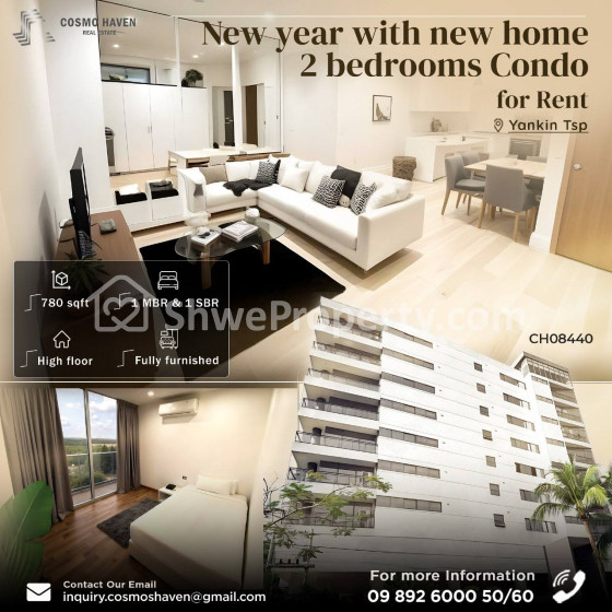 New year with new home, 2 bedrooms Condo for RENT at Yankin, Yangon 🎏🥂