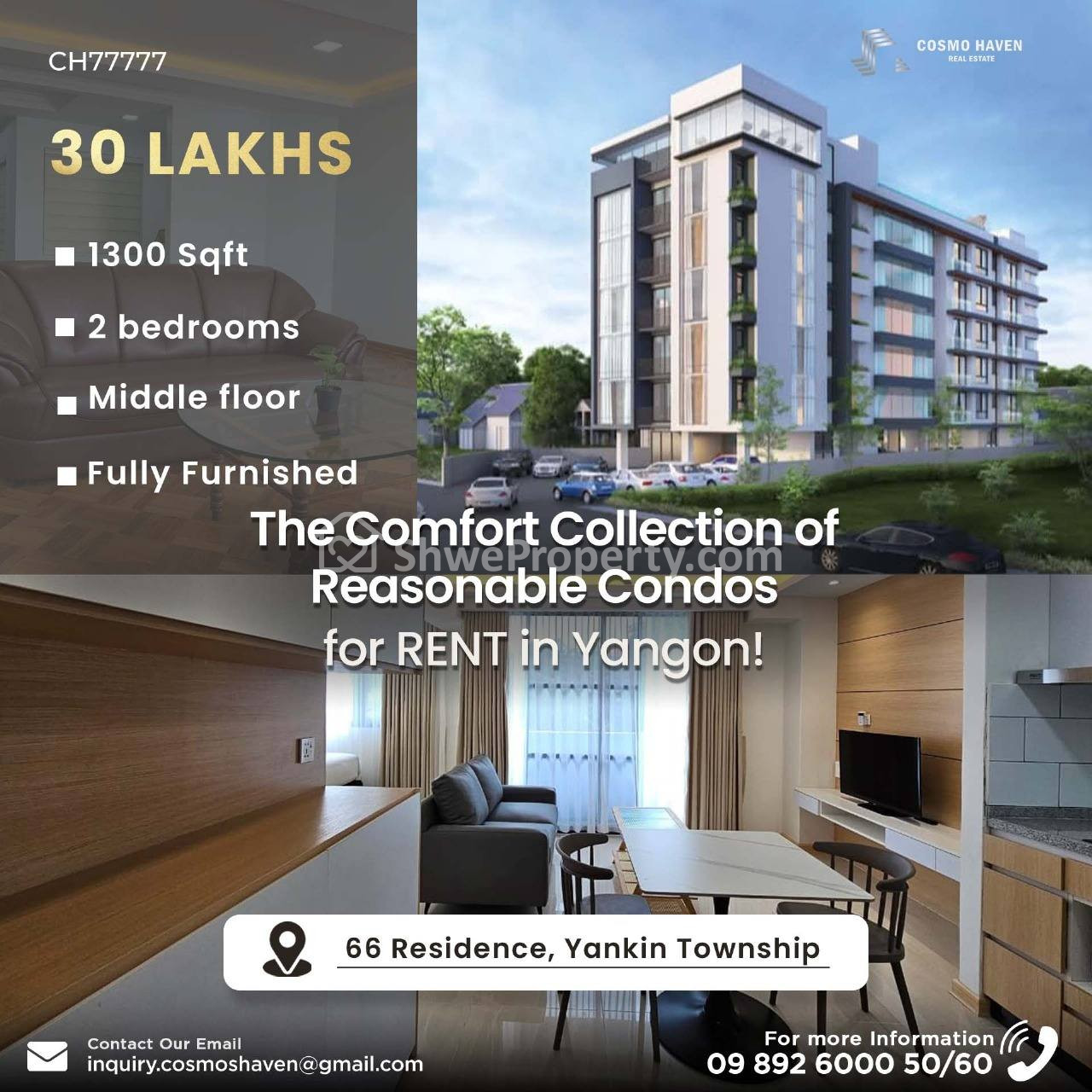 Property Name : ရန်ကုန်မြို့နယ်ရှိမြို့နယ်စုံကွန်ဒိုအငှားများ/66 Residence Condominium for Rent Yankin Township In Yangon