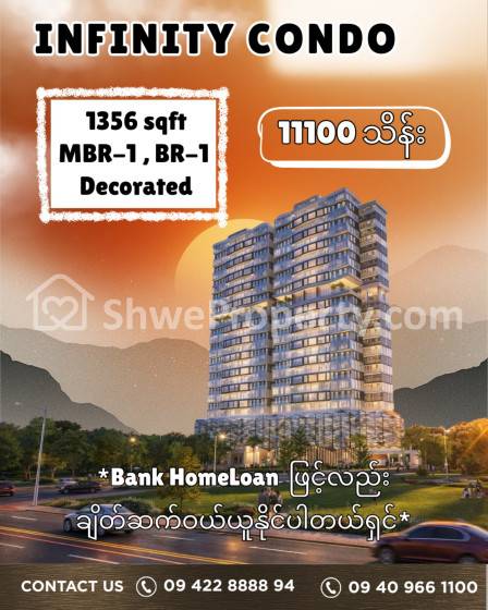 Property Name : ဗဟန်းမြို့နယ်ရဲ့ BCC ကျပြီးသောအသစ်စက်စက် Luxury Condo တစ်ခုဖြစ်သည့် INFINITY CONDO မှ ဈေးနှုန်းတန်အရောင်းခန်း