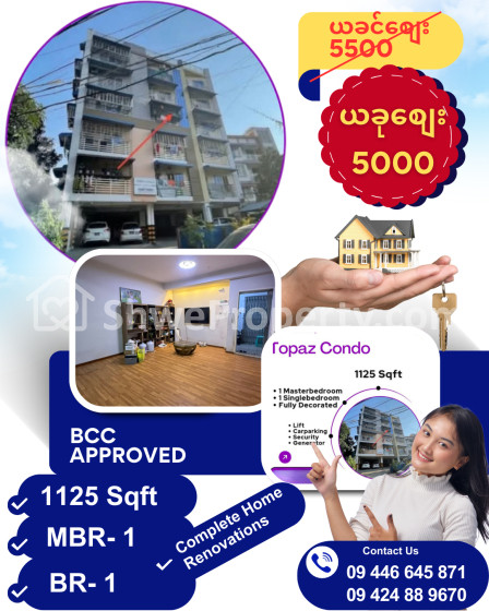 Property Name : ♻ ဗဟန်းမြို့နယ်၏ ဥဿဘုရားလမ်းမှာတည်ရှိသော #Topaz Condo မှ ပြင်ဆင်ပြီး ဈေးနှုန်းသင့် အရောင်းခန်းလေးတစ်ခန်းနဲ့ မိတ်ဆက်ပေးပါရစေ ခင်ဗျ... ♻ ဦးချစ်မောင်လမ်းမကြီး အနီး ၊ ရန်ကင်းစင်တာ၊ ငါးထပ်ကြီးဘုရား၊၆ထပ်ကြီးဘုရား၊ Ocean Centre တို့နှင့် အနီးဆုံးရှိ ကားပါကင်ပါဝင်သည့် ကွန်ဒို.. ✅ ဗဟန်းမြို့နယ် ၊ Topaz Condo - 1125 Sqft - 1 Masterbedroom - 1 Singlebedroom - Fully Decorated ? Sale Price - 5500 သိန်း ( ညှိနှိုင်း ) ? ===================================== Facilities: ========= - Lift - Car Parking - Security - Generator ✅ အထက်ပါအိမ်ရာဝန်းအခန်းလေးနှင့်ပတ်သက်၍ အသေးစိတ်သိရှိလိုပါက အောက်ပါဖုန်းနံပါတ်လေးများအား ဆက်သွယ်စုံစမ်းဆက်သွယ်နိုင်ပါတယ် ခင်ဗျ.... Call Now Ye Htet Ko ☎ 09 446 645 871 ☎ 09 79999 8943 Ma Htet Myat Wai ☎ 09 424 88 9670 ☎ 09 777 300 836 ✅ ယခုကြော်ငြာများအပြင် ရောင်း/ငှားရန် နေရာများလည်းရှိပါသဖြင့် ဆက်သွယ်စုံစမ်း မေးမြန်းနိုင်ပါတယ်??? ✅ ယခုပဲဖုန်းလေးဆက်ပြီး လာကြည့်ပေးဖို့ ဖိတ်ခေါ်ပါတယ်? ? ✅ လူကြီးမင်းတို့၏ ရောင်းရန်/ငှားရန် အိမ်၊ ခြံ၊ မြေများကိုလည်း အမြန်ဆုံး ရောင်း/ငှား ဖြစ်အောင် အကောင်းဆုံး ဝန်ဆောင်မှုပေးနေပါတယ် ခင်ဗျ... #topazcondo #topazကွန်ဒို #bahanTownship #ဗဟန်းမြို့နယ် #condoforsale #ကွန်ဒိုအရောင်း #aungmyaysaytanar #အောင်မြေစေတနာ #realestate #အိမ်ခြံမြေ