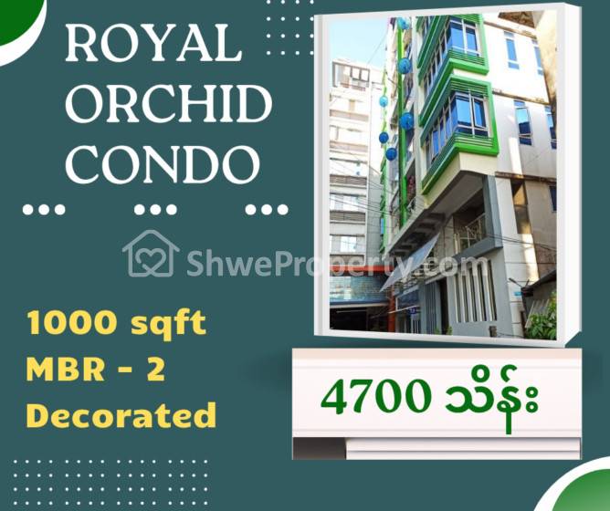Property Name : Downton Area အနီး ဒဂုံမြို့နယ် ဒဂုံမြို့နယ် ပန်တျာလမ်းအနီး ဗိုလ်ရာညွန့် လမ်းမပေါ်ရှိ Royal Orchid Condo မှ ဈေးတန် ပြင်ဆင်ပြီး အသင့်နေအခန်းရောင်းမည်