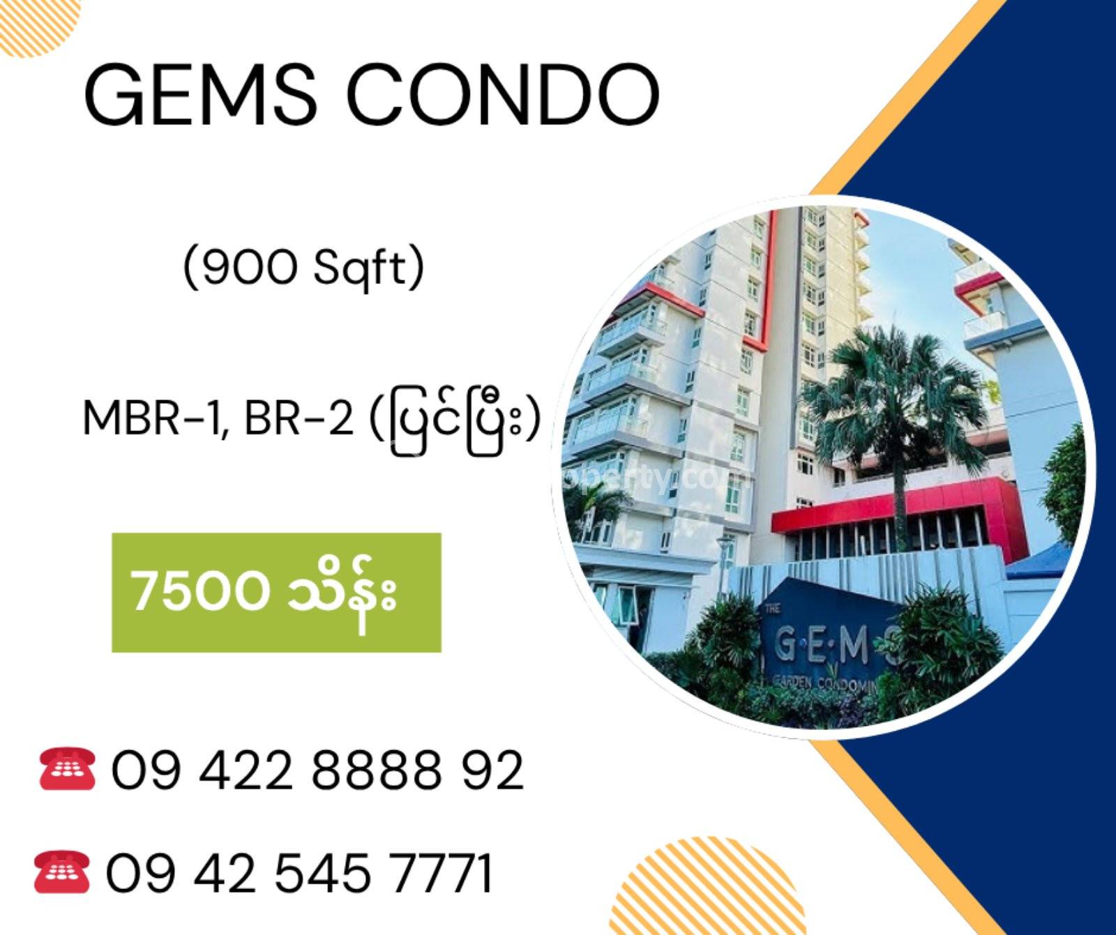 လှိုင်မြို့နယ်အတွင်း အကောင်းဆုံး Luxury Condo များထဲမှ တစ်ခုအပါအဝင်ဖြစ်သော Foreigner အများစုသဘောကျနှစ်ခြိုက်ကျတဲ့ GEMS Condo မှ 2 Bedrooms အရောင်းခန်း......
