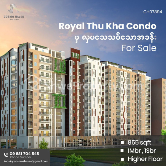 Property Name : လှိုင်မြို့နယ်ရှိ Royal Thukha Condominium အရောင်း/Royal Thukha Condominium for Sales Hlaing Township in Yangon/09892600050,09892600060
