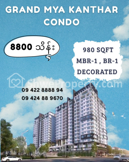 Property Name : လှိုင်မြို့နယ်၊Grand Myakanthar Condo (980sqft)၊For Sale