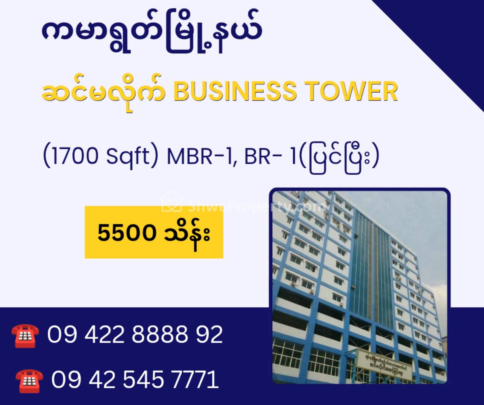 Property Name : ကမာရွတ်မြို့နယ်၊ Grand hanther ဆေးရုံ၊လှည်းတန်းစင်တာအနီးတွင်တည်ရှိပြီး၊ sqftအကျယ် ပြင်ဆင်ပြီး ဆင်မလိုက် business tower မှအရောင်းခန်း