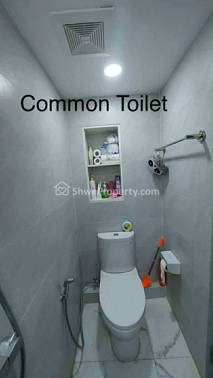 🏠-ရေချိုးခန်းတွင် ရေပူရေအေး တိုင်ကီ တပ်ဆင်ထား။