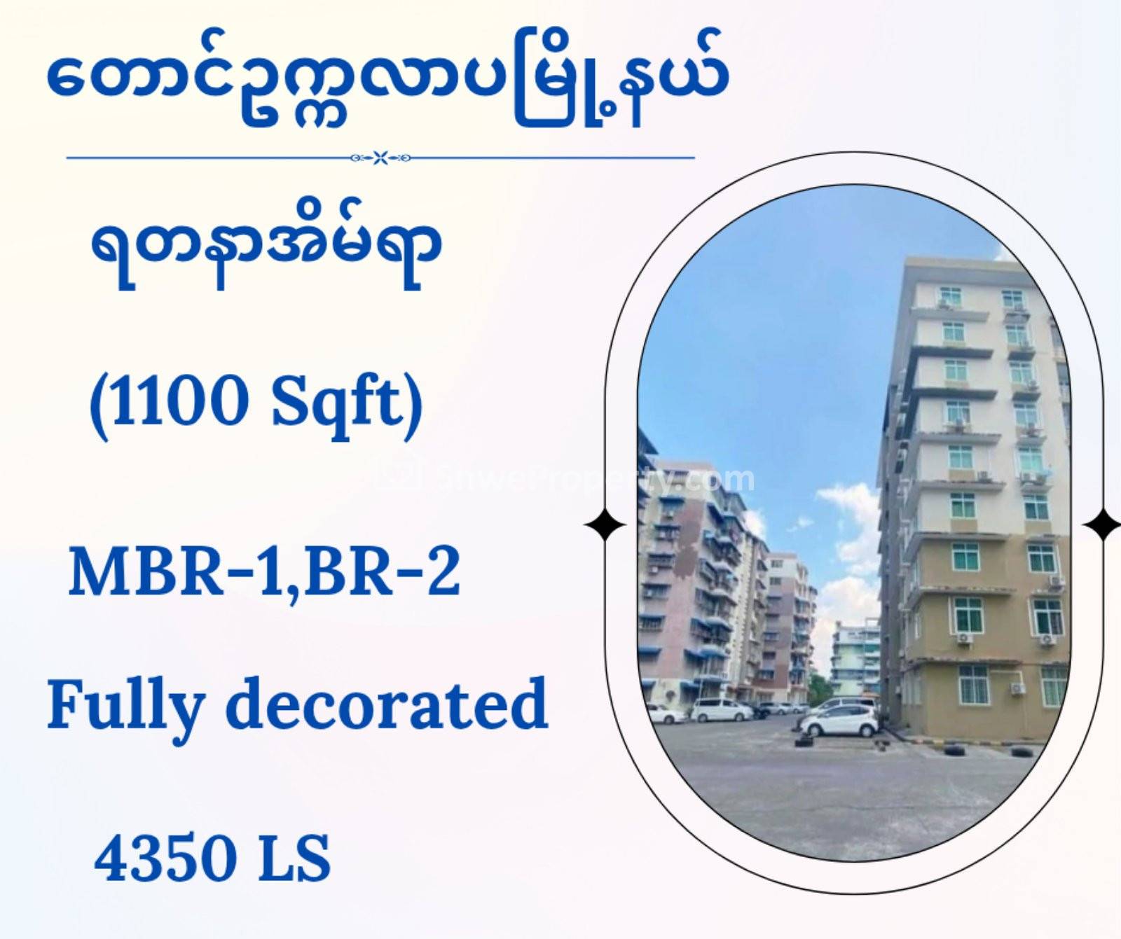 2 bedroom, 2 bathroom Condo for sale in Okkalappa South, Yangon
