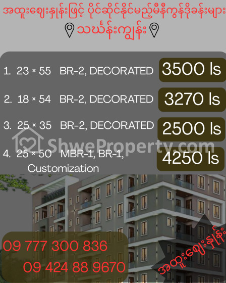 Property Name : သင်္ဃကျွန်းမြို့နယ်အတွင်း အထူးဈေးနှုန်းဖြင့်ပိုင်ဆိုင်နိုင်မည့် Mini Condo အရောင်းခန်းများ