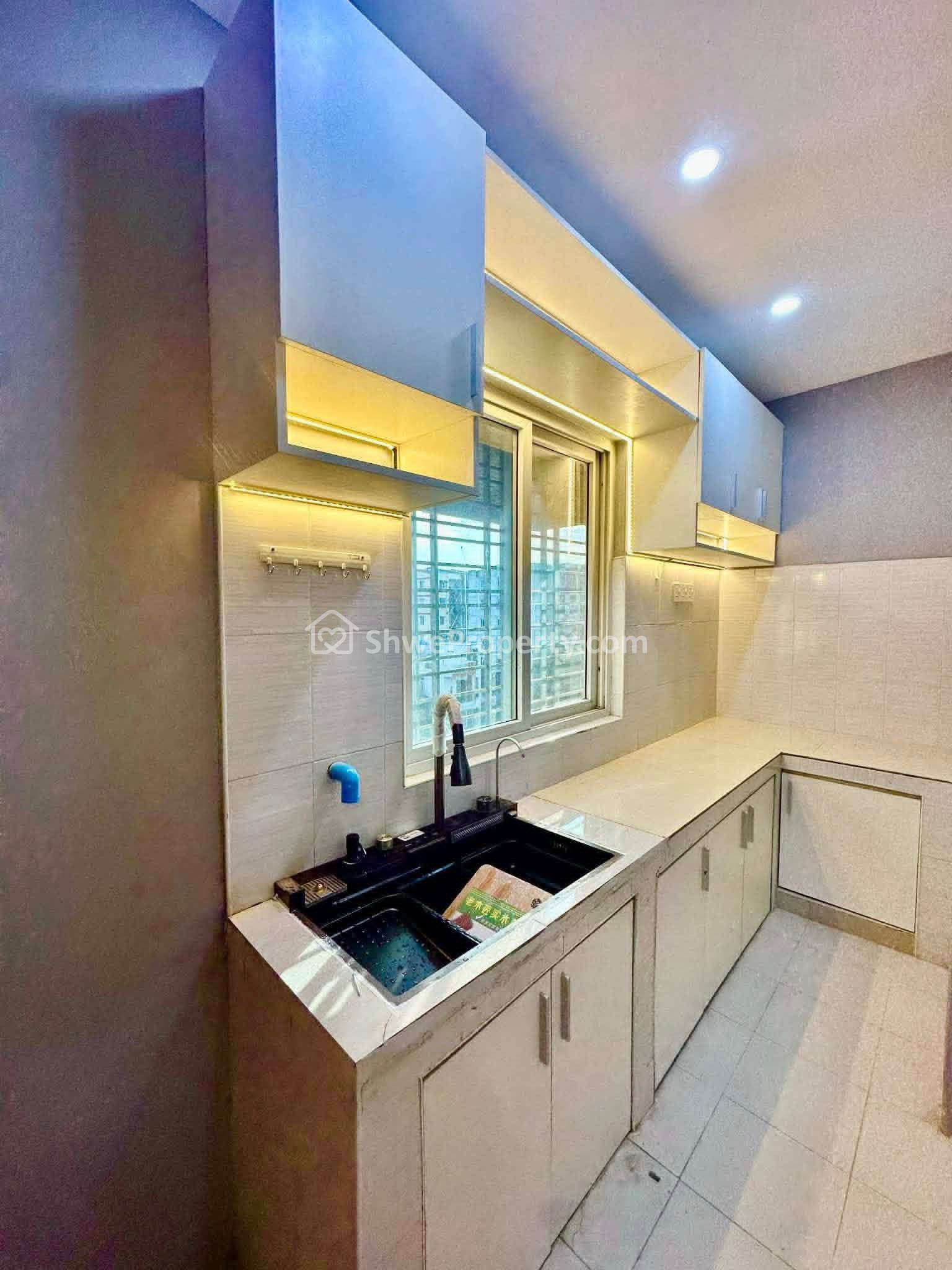👉Kitchen တွင် အပေါ်အောက် Cabinet များ ပါပါတယ်။