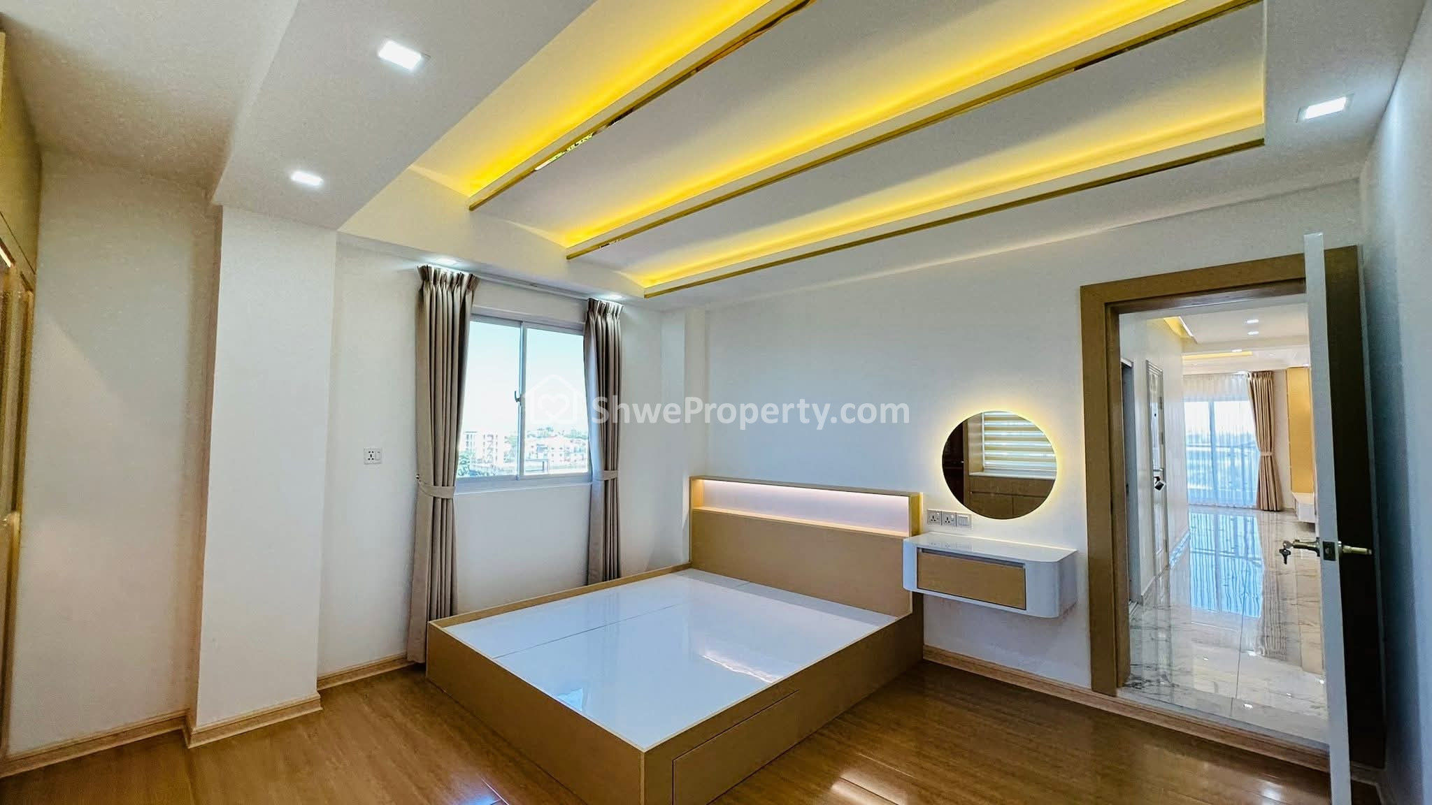 လေးနဲ့လိုက်ဖက်အောင် ပြင်ဆင်ထားတဲ့အတွက် ခြေလှမ်းတိုင်းမှာရွှေရောင်လွှမ်းပြီး ကျက်သရေမင်္ဂလာအပေါင်းနဲ့ ပြည့်စုံတဲ့ Condo လေးဆိုလည်းမမှားဘူးနော်